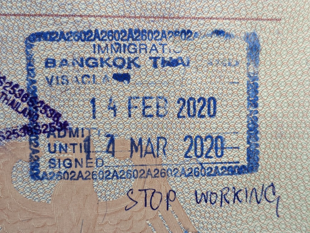 I slep at the airport for a few hours and I return back to Thailand with the first flight in the morning. I arrive around noon. Immigration gives me a 30 day tourist visa and adds a note in my passport that I have stopped working.